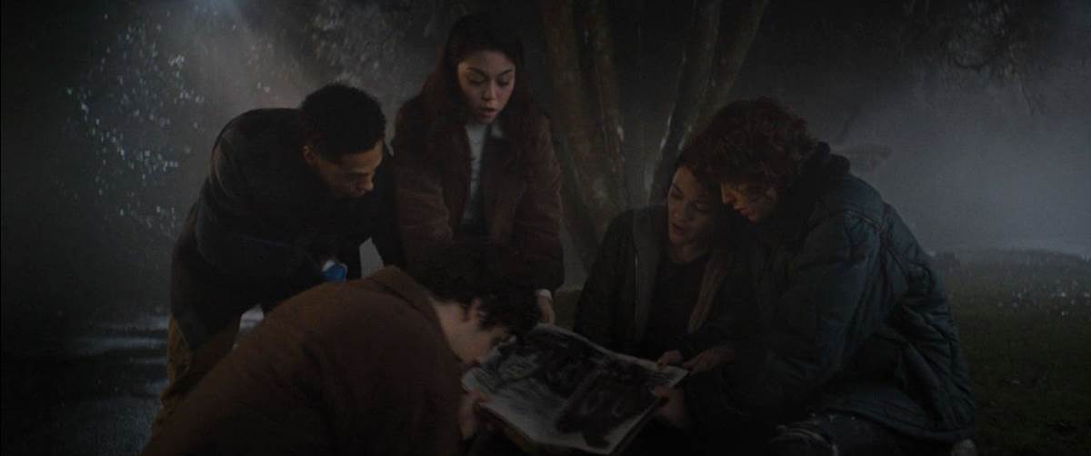 Isaiah and Margot exit the house in the past, with James, Isabella, and Lucas standing outside. They all followed her into the scrapbook. “There were other people in the house," she tells them. They turn around and watch the teens who tormended Harold run out of the back door. “I found it," one of them says, carrying a chest. We have to get him out," Sarah demands, but her boyfriend Ben (William Chris Sumpter) stops her as fire erupts from the basement window, a screaming face visible in the flame. “Harold’s gone," Nora (Taylar Hender) says. Victoria (Michelle Mao) asks if they should call someone.“No, Biddle’s dead, it doesn’t mean we have to ruin our lives, too," Eliza (Samantha Blaire Cutler) responds. The teens grab the case they stole and run off into the night.