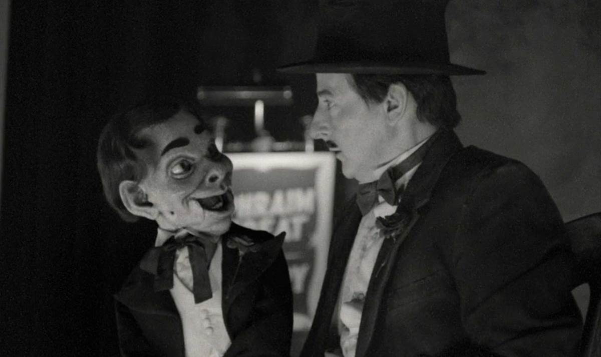 Ephram’s wife, Betsy (Kaylah Zander), is furious when he returns to their humble apartment and tells her he spent all of his money on a ventriloquist dummy. His name’s Slappy," Ephram introduces the creepy dummy, showing her the embroidered name on the dummy’s tuxedo jacket. Betsy takes a bath, and as Ephram sets the doll down, a card falls out of its jacket pocket. He repeats the foreign words on the card, which sound like a spell. After he walks away, we see Slappy come to life.