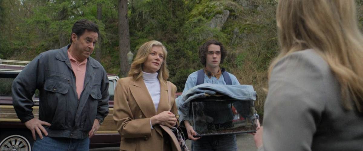 … Not! Ephram eventually passed away. In 1993, his only living relatives were made aware that they had inherited his home in Port Lawrence. Perry Biddle (Jonathan Silverman), his wife Georgia (Georgia Biddle), their son Harold (Ben Cockell), and his pet worms move in. “You’re going to like it here," Perry promises Harold, who was bullied at his previous school. Harold is not so optimistic. The living room of the house is like a museum of Ephram’s old artifacts. Harold is attracted to a white mask with a sinister grin and picks it up. Georgia envisions renovating the basement and turning it into a hangout pad for Harold and his future friends. As they head back upstairs, Harold is called to a brick wall by a voice that whispers, “Over here."