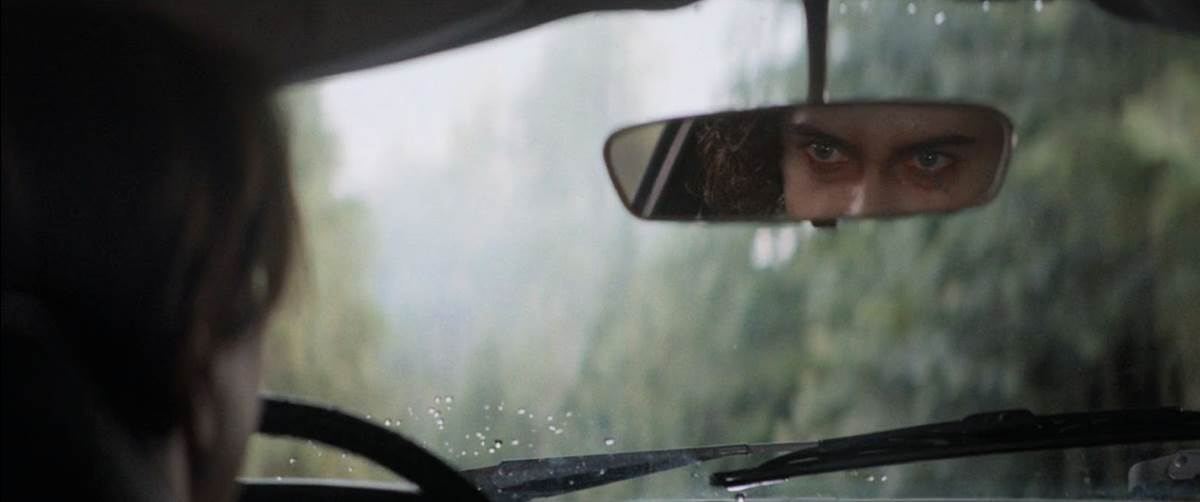 … In the real world, possessed Mr. Bratt is driving in pursuit of Nora. The chewing gum in his mouth has gone bad, and he looks on his passenger seat where the scrapbook is open. He tears half a page out, wads it up around his gum, and tosses it away…