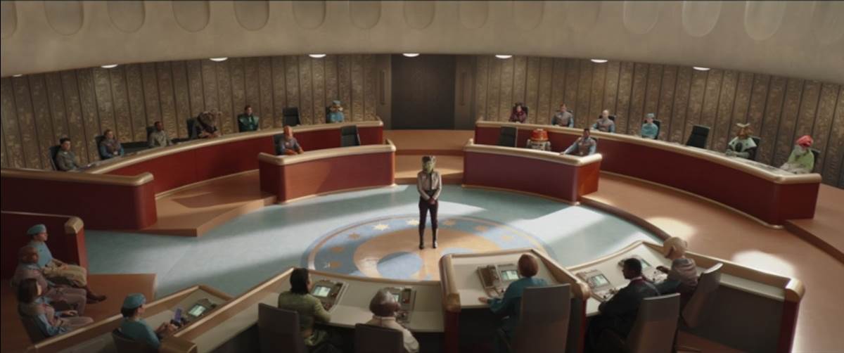 The title of Ahsoka episode 7 is “Dreams and Madness," a reference to the speech that Baylan Skoll (played by the late Ray Stevenson) gave about the planet Peridea in last week’s episode. But it begins on what is presumably Coruscant– though the seat of the New Republic government will be relocated later on in the timeline– at a hearing regarding General Hera Syndulla’s (Mary Elizabeth Winstead) recent conduct. Naturally Chancellor Mon Mothma (Genevieve O’Reilly) is more inclined to let things slide, but Senator Hamato Xiono (Nelson Lee) isn’t so ready to let Hera off the hook. Enter a very familiar golden protocol droid– yes, C-3PO (Anthony Daniels, as always) shows up at the hearing, carrying a message from an off-screen Senator Leia Organa, claiming that the Alderaanian princess was the one who authorized the Ghost’s trip to Seatos. After privately confessing the ruse to Mon Mothma, Hera tells her superior to “prepare for the worst and hope for the best" when it comes to the possibility of Grand Admiral Thrawn’s (Lars Mikkelsen) return.