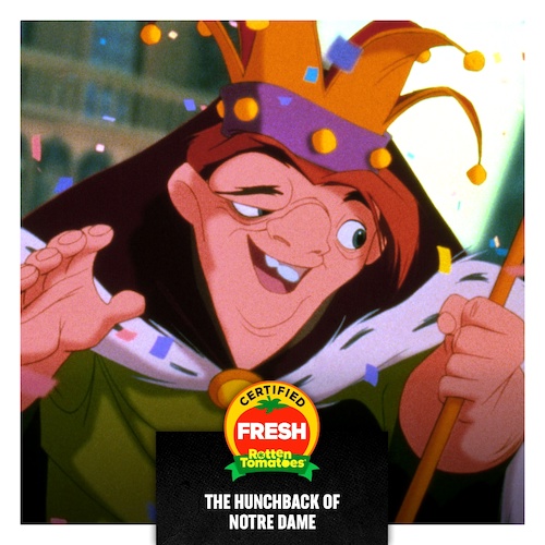 Over twenty five years after its initial release, Rotten Tomatoes has officially certified The Hunchback of Notre Dame as Fresh on the popular review site.