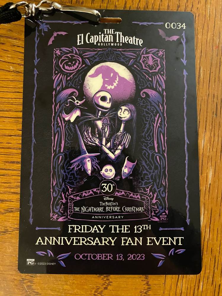 Arriving at El Capitan Theatre earlier in the evening, it was great to see the movie house’s marquee lit up for The Nightmare Before Christmas. As guests entered the theater, they were given a unique credential and a copy of the 2-disc vinyl soundtrack included with the price of admission.