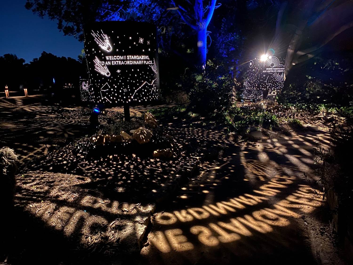 Much like last time, we were dazzled by the gorgeous light and art displays synced with soothing music that illuminate the paths of the South Coast Botanic Garden on the Palos Verdes Peninsula. Unfortunately as of the end of Sunday evening, this experience has ended for the time being, but fortunately the Astra Lumina website promises, “The stars will return soon!"