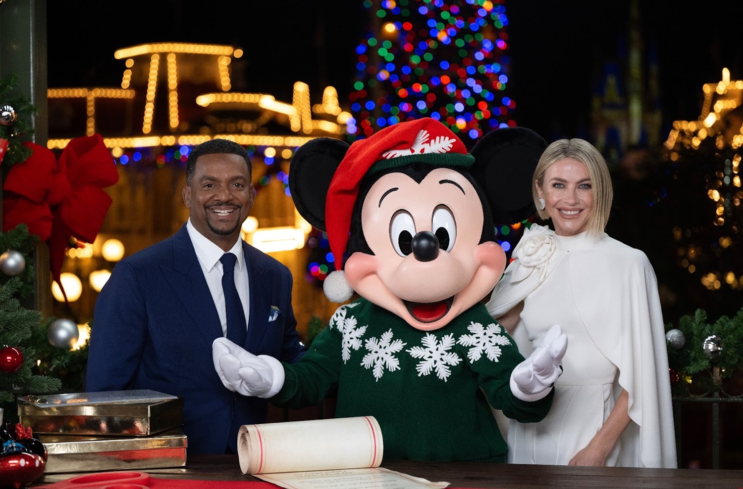 Julianne Hough and Alfonso Ribeiro will host the holiday special, which features numerous performances at Walt Disney World, Disneyland and Aulani, a Disney Resort & Spa.