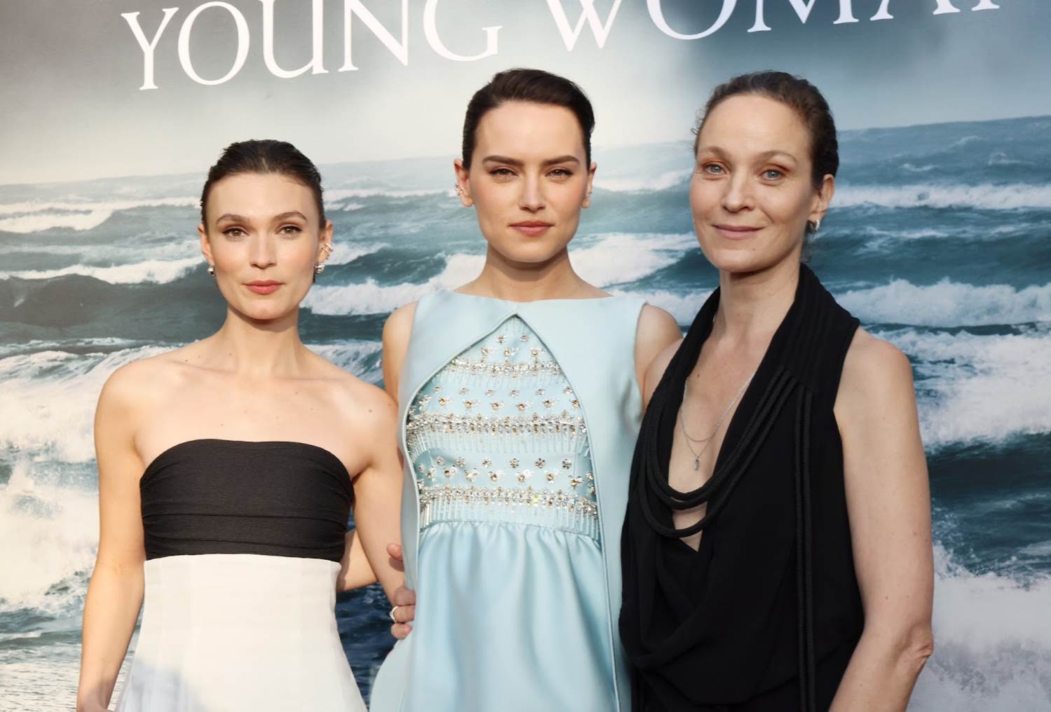 - The cast and filmmakers from Young Woman and the Sea, including Daisy Ridley, Tilda Cobham-Hervey, Kim Bodnia, Glenn Fleshler, Jeanette Hain, Olive Abercrombie, director/executive producer Joachim Rønning, writer/producer Jeff Nathanson, and producers Jerry Bruckheimer and Chad Oman strolled the red carpet poolside at the Hollywood Roosevelt Hotel last night before attending the film’s world premiere at the El Capitan Theatre.