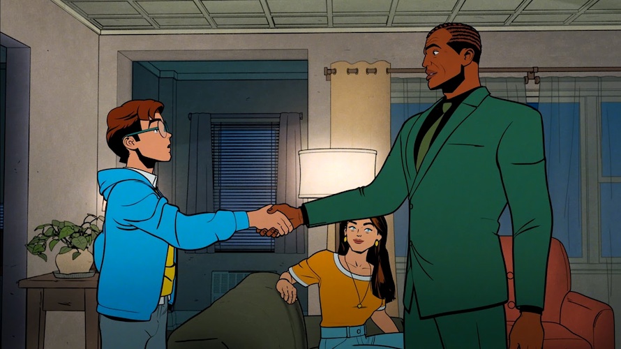 We then see Norman also taking note of that logo in security footage before he is startled by Spider-Man. The two once again discuss working together and it appears Peter has changed his mind. He removes his mask and shakes Norman’s hand, welcoming him to the Spider-Man team. Meanwhile, Donovan shakes Lonnie’s hand and welcomes him to the 110th Street Gang as the episode comes to a close.