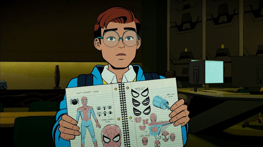 Peter paces the floor and Harry asks him what’s going on. Peter vents about all his stress and Harry explains that whatever Spider-Man does is completely up to Peter. They then hear a police report of a truck hijacking and Peter says that’s what he needs to do but he still doesn’t have a suit. Harry tells him he does and shows him a new one he had created based on the designs Peter kept in his notebook. We never see the suit except for a reflection in Peter’s glasses revealing the iconic red Spider-Man mask. Harry says the familiar phrase, “go get ‘em, Tiger" as the episode comes to a close. That phrase is traditionally said by Mary Jane Watson.