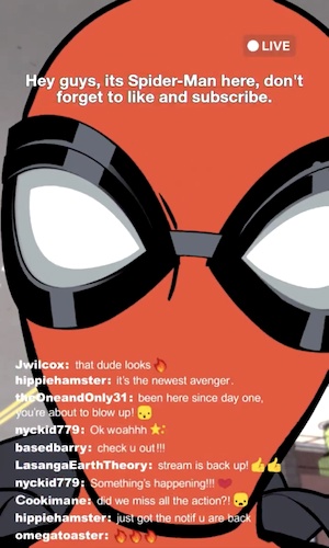 - Disney took the opportunity to preview the new animated Disney+ series, Your Friendly Neighborhood Spider-Man, with a first look at Spider-Man in the series, interrupting footage of the balloon with an animated Instagram Live.