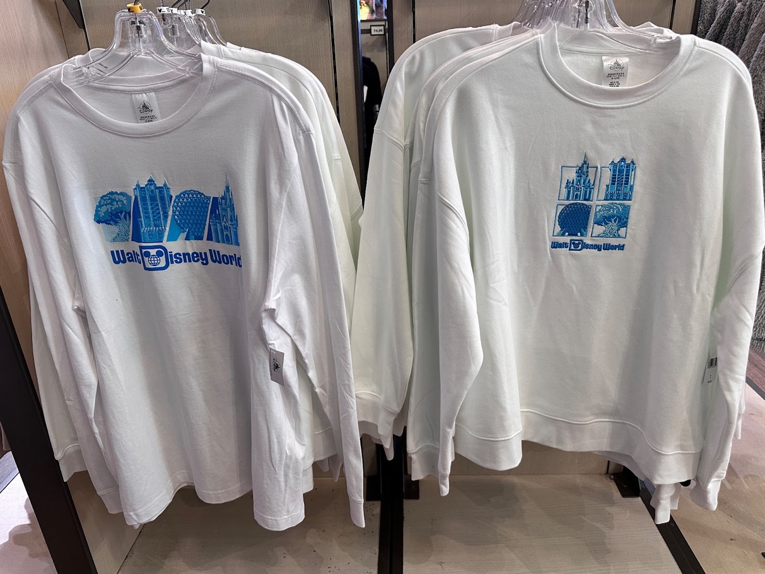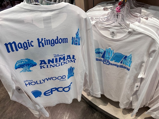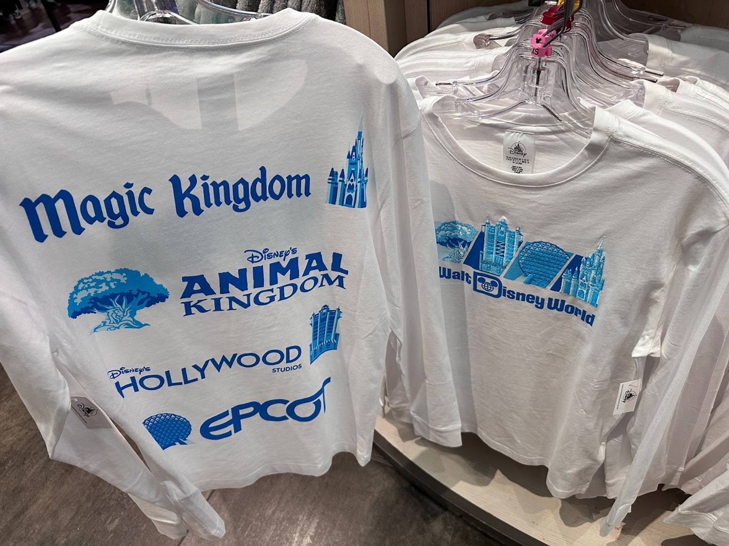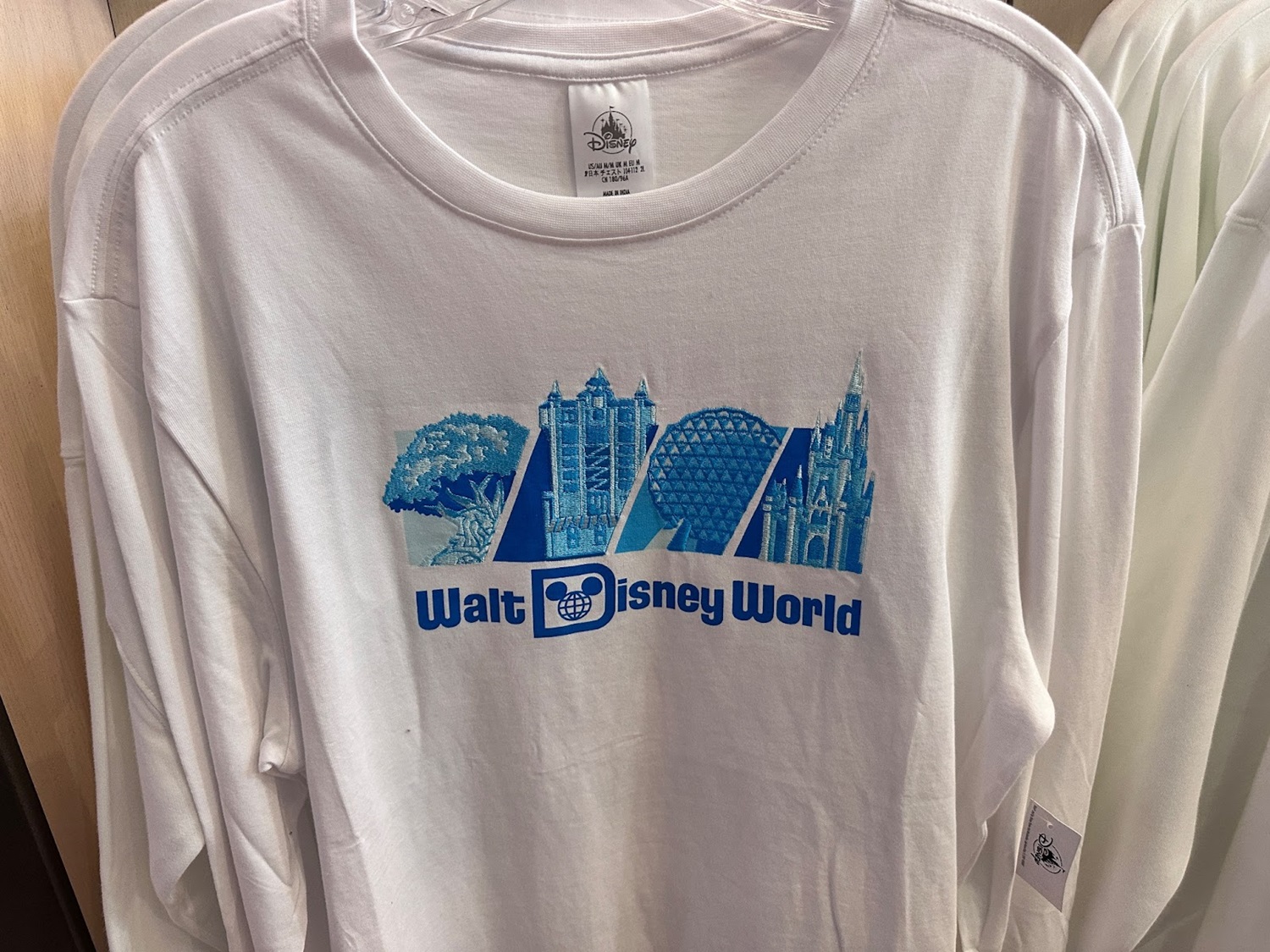 - Lastly, there’s a wonderful, gray button-up shirt that features the four main park icons, alongside a number of other iconic elements from throughout Walt Disney World.