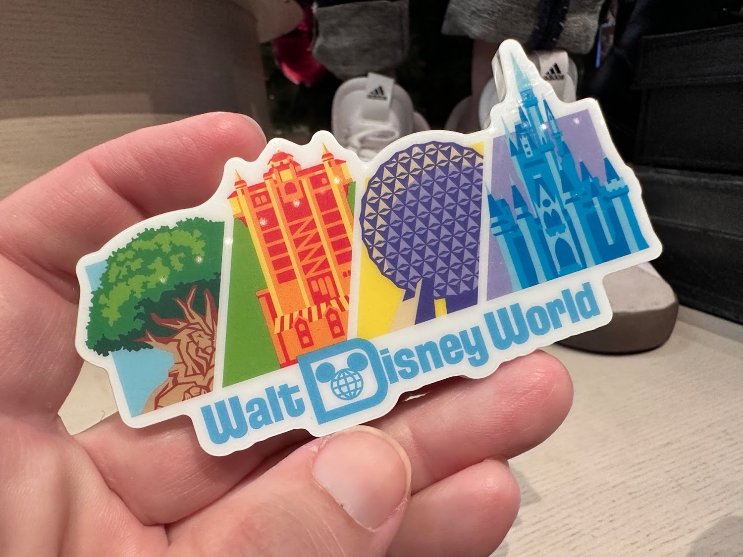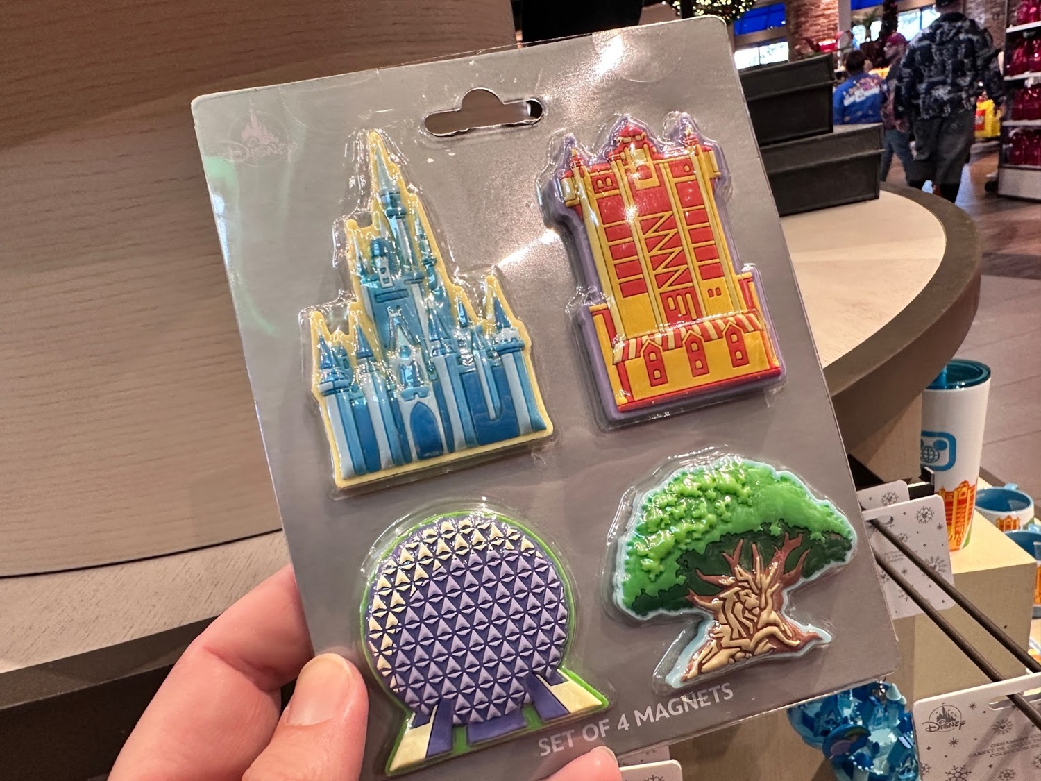 - Each item features Cinderella Castle, Spaceship Earth, The Hollywood Tower Hotel and the Tree of Life, alongside the classic Walt Disney World logo.