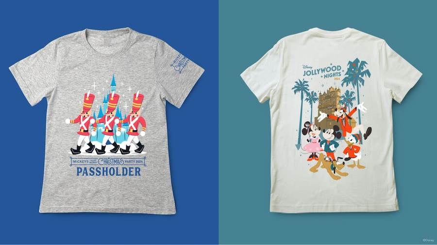 - Over at Disney’s Hollywood Studios, you can commemorate Disney Jollywood Nights with a Passholder-exclusive shirt featuring Mickey Mouse and his friends decked out in holiday garb – available at Stage 1 Company Store.