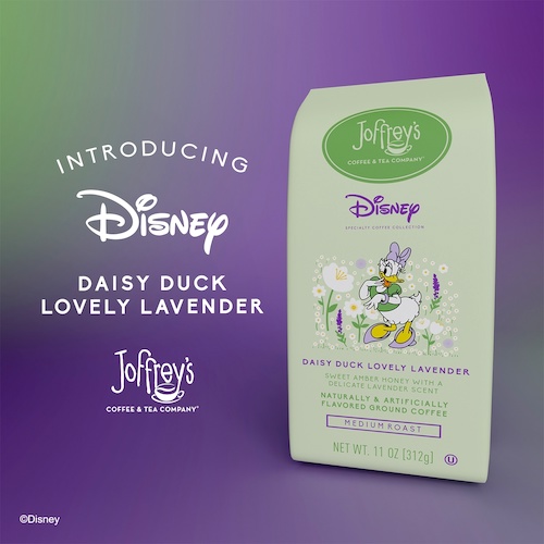 Joffrey’s Coffee has introduced its latest Disney character-themed caffeinated concoction – Daisy Duck Lovely Lavender. The medium-roast flavored coffee offers notes of sweet amber honey and delicate lavender, that’s as sweet and memorable as Daisy.