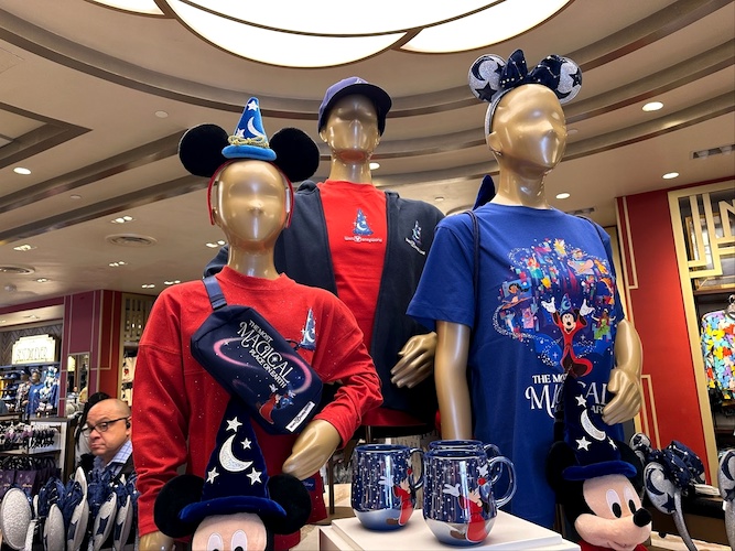 Heavily inspired by Sorcerer Mickey, the red, blue, and navy collection features clothing accessories and home goods that are perfect to commemorate a trip to Disney’s Florida theme parks.