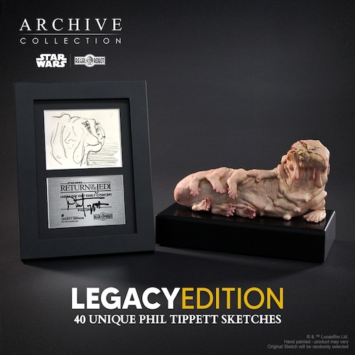 Several years ago, the themed furniture and collectibles manufacturer Regal Robot released a replica of a Jabba the Hutt concept maquette from the pre-production stage of 1983’s beloved film Return of the Jedi. And today the same company revealed a first look at another Jabba maquette, this time depicting the Hutt crimelord as an even more grotesque-looking design.