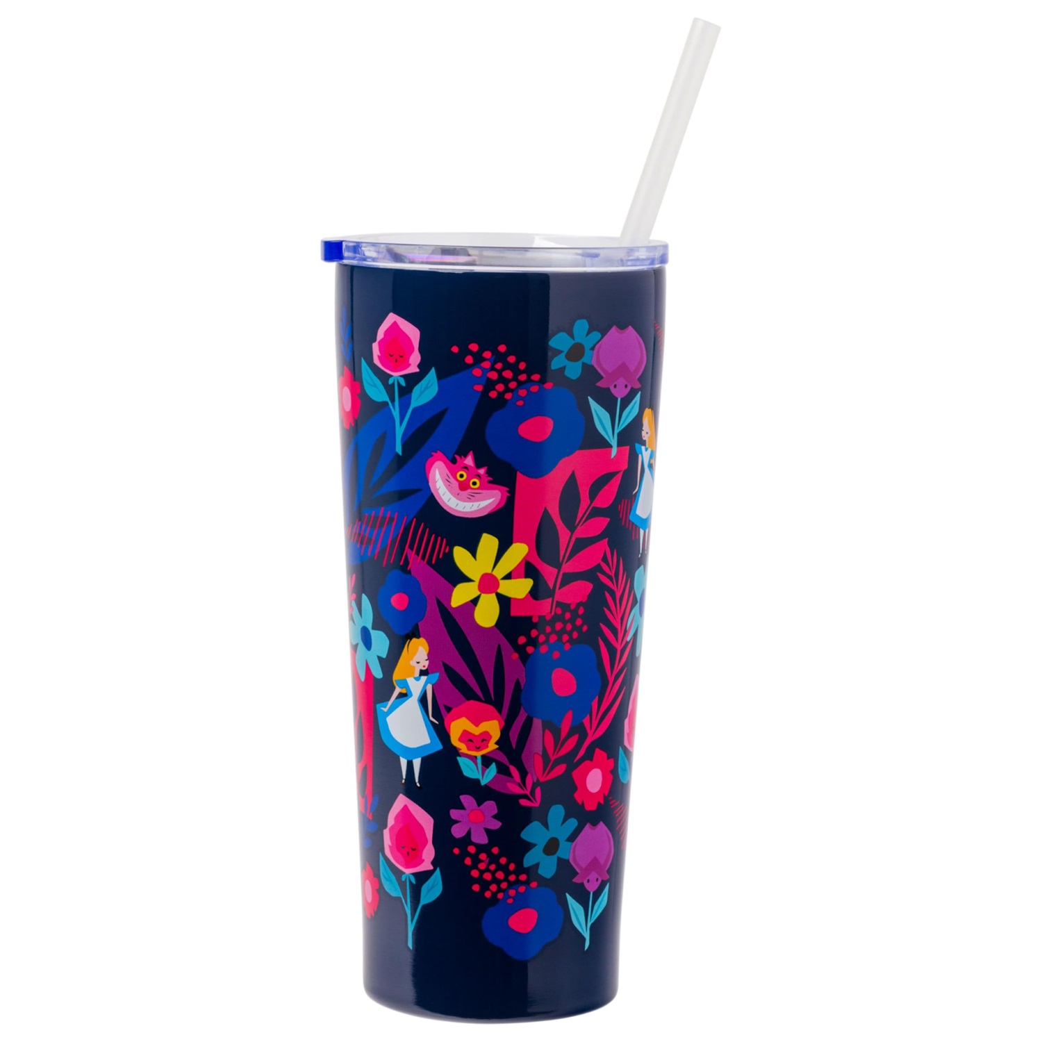 Silver Buffalo Disney Alice in Wonderland Floral Pattern Double Walled Stainless Steel Tumbler