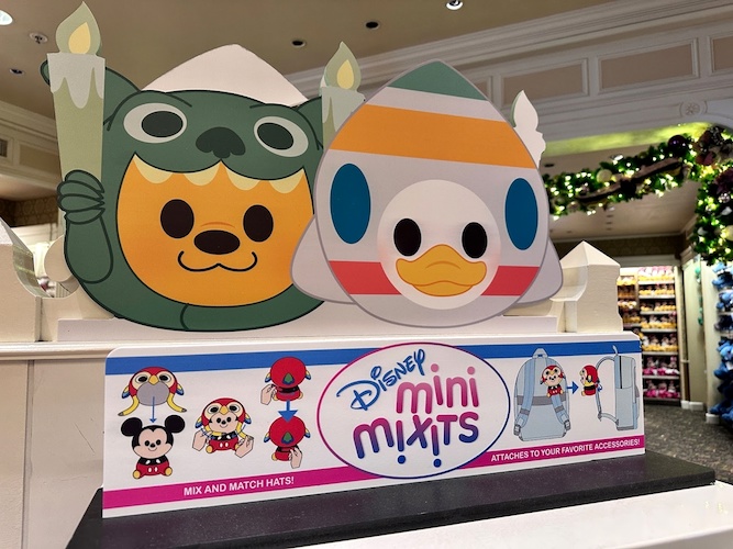 Disney’s latest plush collection, Disney Mini Mix-its, have made their debut at Walt Disney World. We spotted them today at the Magic Kingdom, where they have a prominent display inside the Emporium. With Disney Mini Mix-its, classic Disney pals are here to be your traveling companions and just like you, they know the importance of style. These bitty figures come with swappable headwear inspired by park attractions.