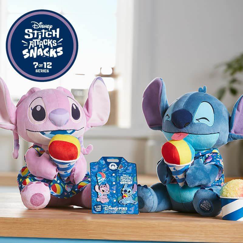 The playful assortment features snackable spins on your favorite indestructible and completely irresistible alien. This month’s theme is shaved ice and includes pins featuring Stitch and Angel each enjoying their own shaved ice treat. As for the plush, the friends are happily indulging in the frozen treat with Stitch taking a licking of his and closing his eyes while he enjoys the moment of pure bliss!