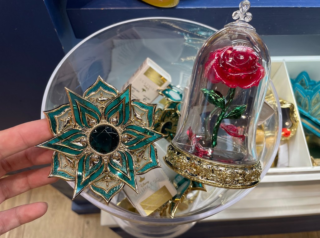 For Tiana’s collection, guests will find a very earth green, amber and bronze color palate. Found on much of the packaging, the refreshing scent features water lily, gilded amber, and shimmering bayou woods notes.