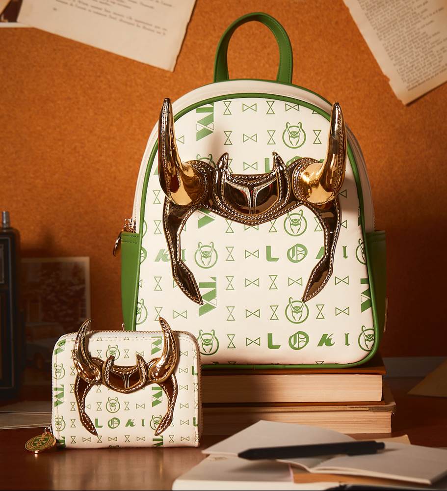 - You can also carry a small piece of Loki with you when wearing the BoxLunch Exclusive Loki Horns Mini Backpack featuring an all-over print of Loki icons; side pockets, TVA and Loki silhouette charm zipper pulls, and adjustable straps.