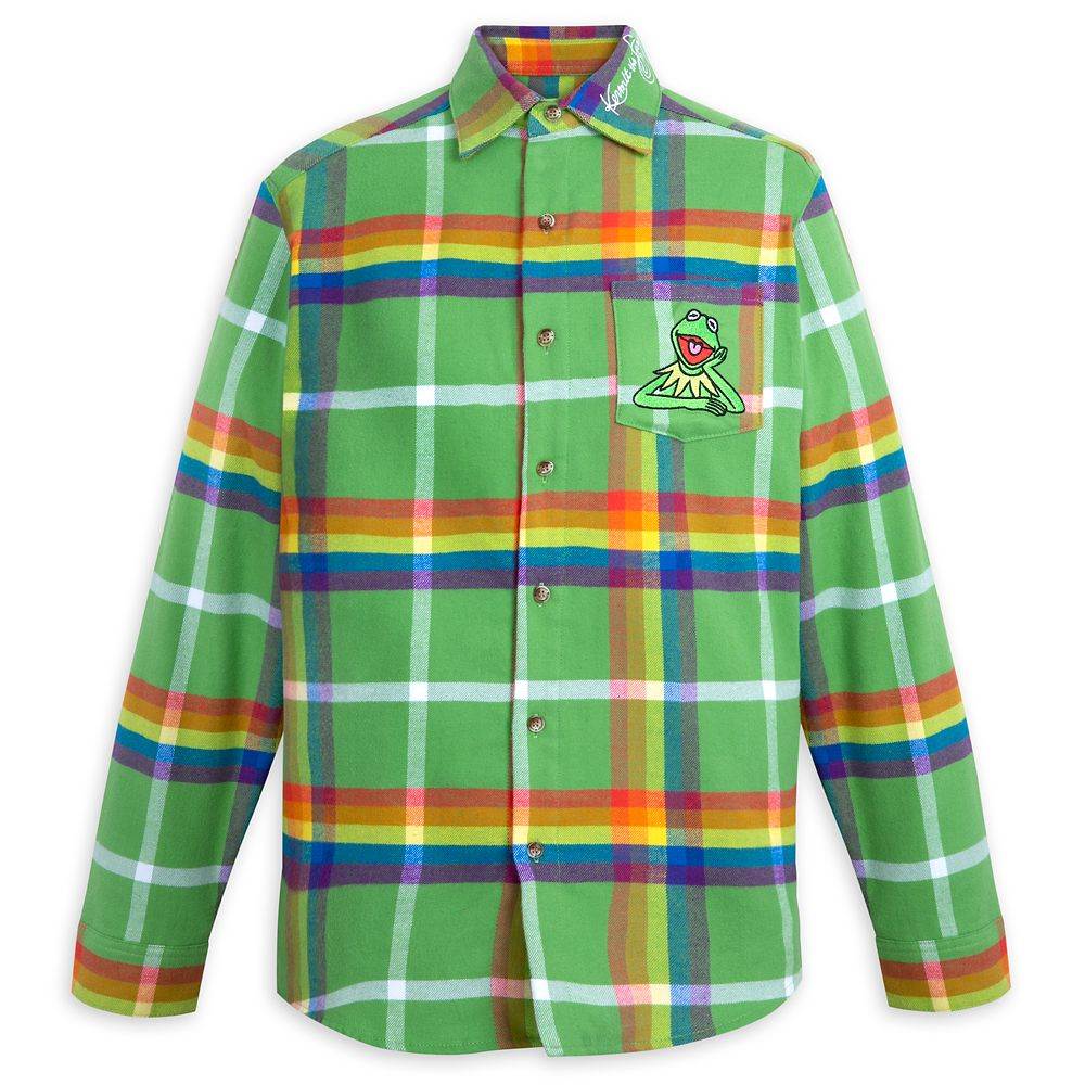 Searching for your rainbow connection or simply channeling your inner diva? How about both! These bright flannel shirts embrace Kermit and Miss Piggy and feature quotes like “The Rainbow Connection" and “It’s All About Moi."