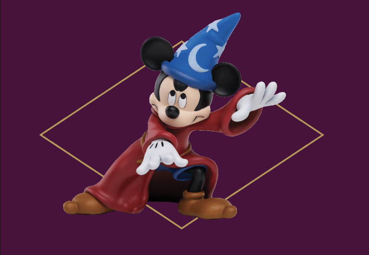 - A new exclusively designed figure pays tribute to Mickey Mouse’s most legendary film role. In “The Sorcerer’s Apprentice" segment of the 1941 animated masterpiece Fantasia, Mickey mischievously commanded the heavens with his magical prowess—and this 6-inch figurine (pictured above), designed in collaboration with Gentle Giant Studios, captures that empowering, enchanting moment.