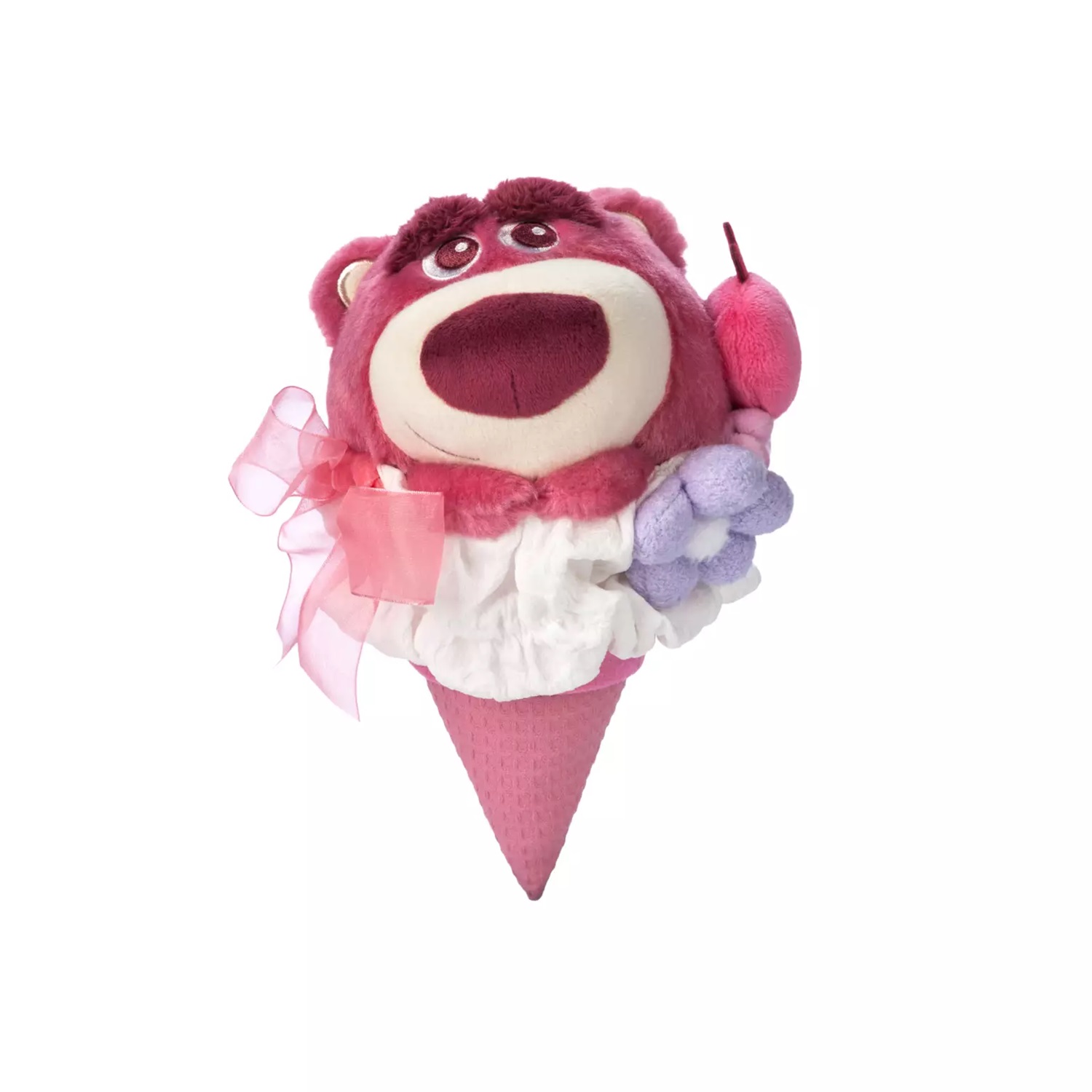 - The four characters feature an adorably huggable and soft design adorned in a waffle-weave cone, plush flowers, ribbons, and character-themed trim.