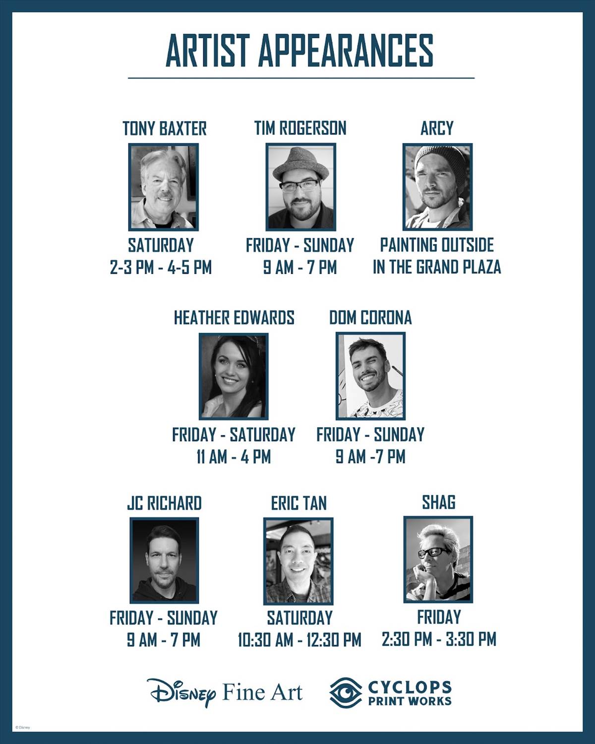 - Artists set to appear at the Disney Fine Art and Cyclops Print Works booth during D23: The Ultimate Disney Fan Event (taking place Friday, August 9th through Sunday, August 11th) include: