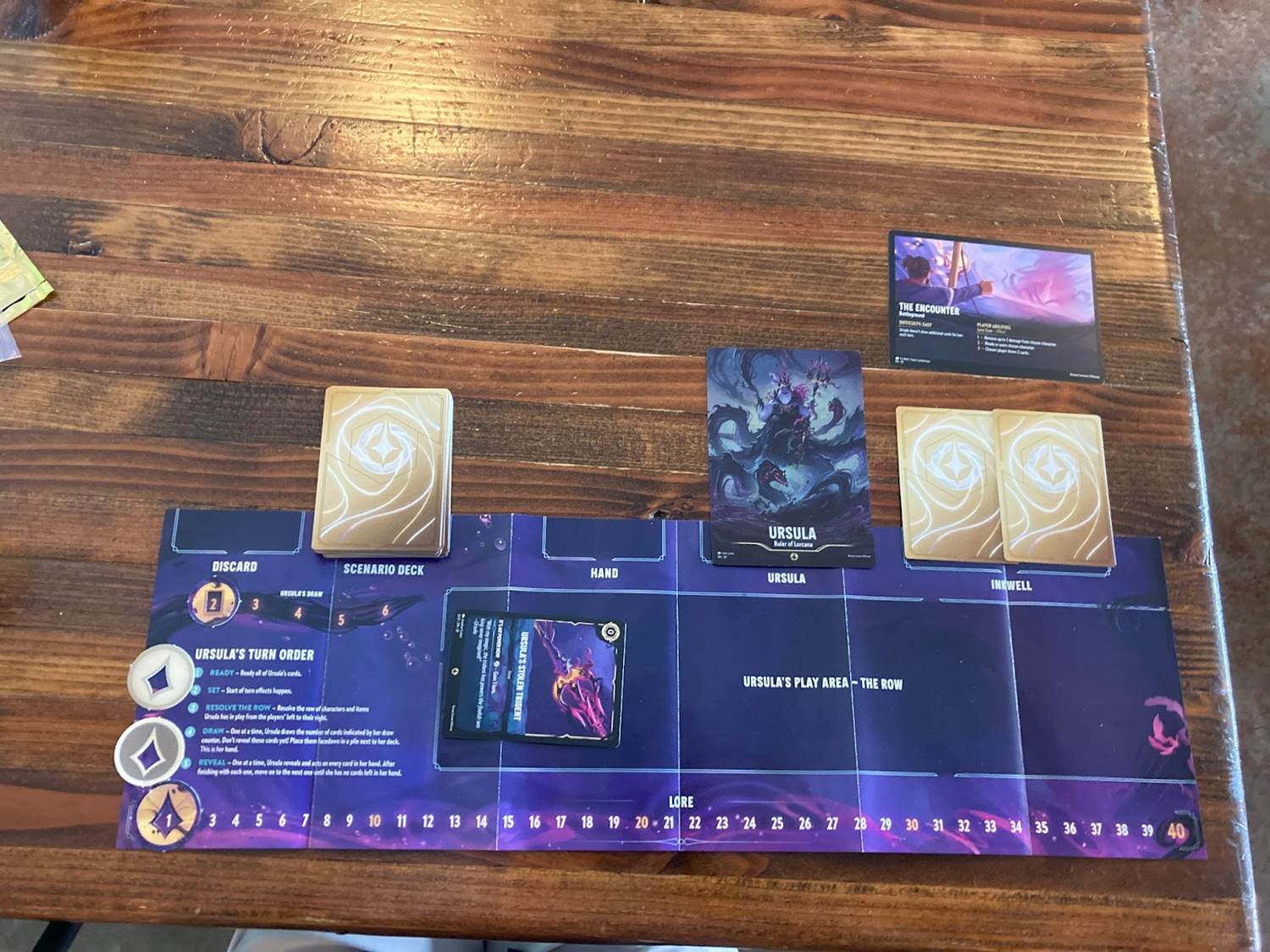 Undeterred, we gave it another shot. This time around, we learned from some of our past mistakes and did far better… but still came up short. Finally, on our third play through, we were able to reach our Lore goal before Usula, leading to her defeat.