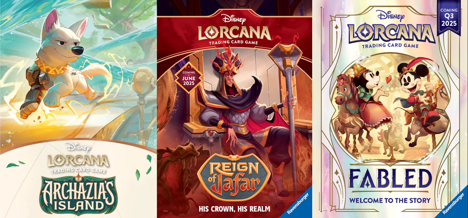 Following Reign of Jafar will be Fabled, coming in the third quarter of 2025. Teaser art was revealed, which features a Disney Lorcana interpretation of Mickey and Minnie Mouse from the classic short The Brave Little Tailor riding a carousel. The tagline for Fabled reads “Welcome to the Story."
