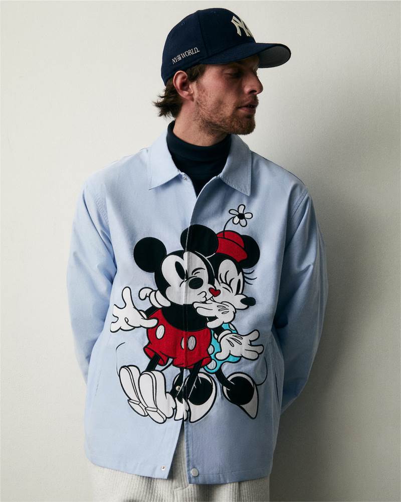 - While the collection on the whole has something for every fan, there are some standout pieces. The Wool Varsity Jacket is crafted of premium wool blended fabric, with Nappa leather sleeves & a diamond-quilted satin lining—and features all-over custom leather applique Mickey Mouse artwork at the front and back.