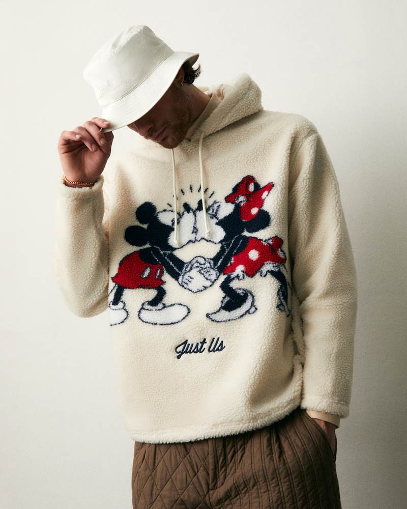 - The Sherpa Hoodie is made of premium heavyweight Sherpa fabric with a mesh-lined body, and highlights exclusive satin-stitch “Just Us" embroidery, alongside jacquard Mickey Mouse & Minnie Mouse artwork on the front and back.