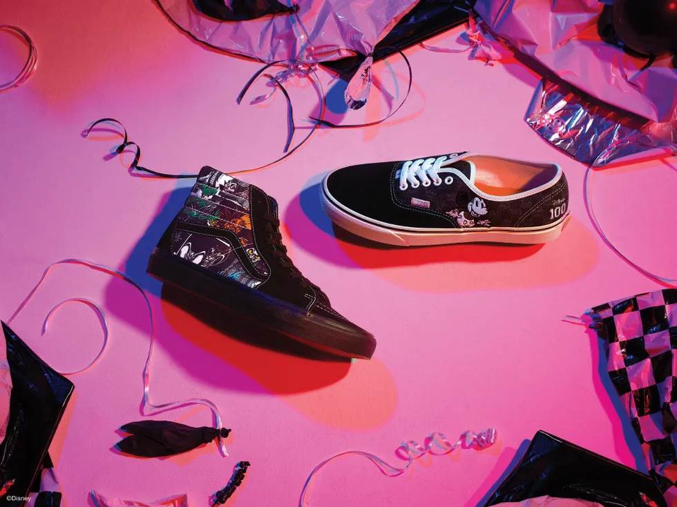 - To celebrate the 100th anniversary of the Walt Disney Company, Disney has partnered with footwear company Vans to release Disney-themed clothing and footwear for both adults and children.