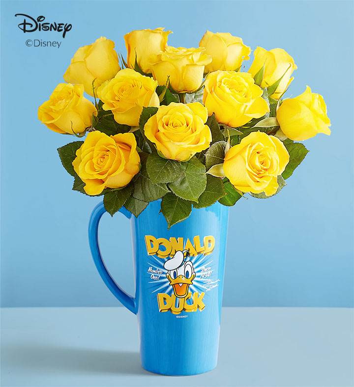 ● Disney Donald Duck 90th Anniversary Mug with Yellow Roses by 1-800 Flowers