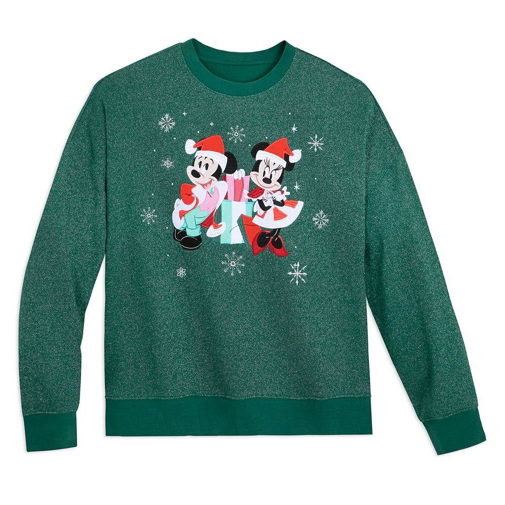 Santa Mickey and Minnie Mouse Holiday Pullover Sweatshirt for Women