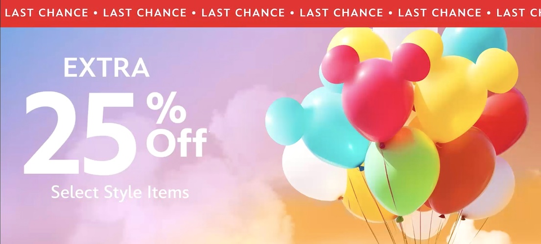 - As things wrap up, Disney Store is offering an extra 25% off select items including new markdowns, holiday collections, toys, accessories and so much more. Guests can use the code EXTRA25 at checkout to unlock the additional savings.