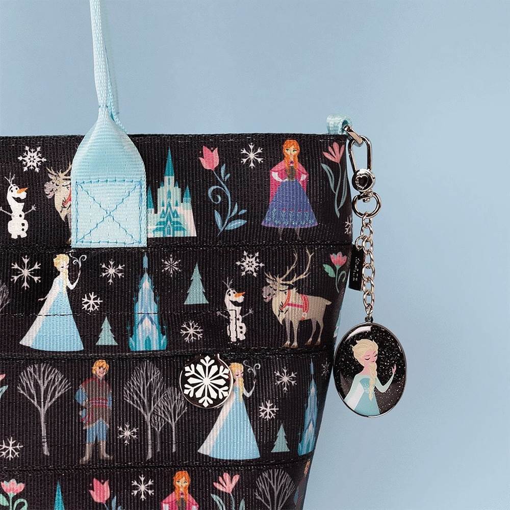 - For added magic, the bag features a complimentary lining covered in imagery of the castle and palace and plenty of colorful snowflakes. If that wasn’t enough there's also a bag charm starring Anna on one side and Elsa on the other.
