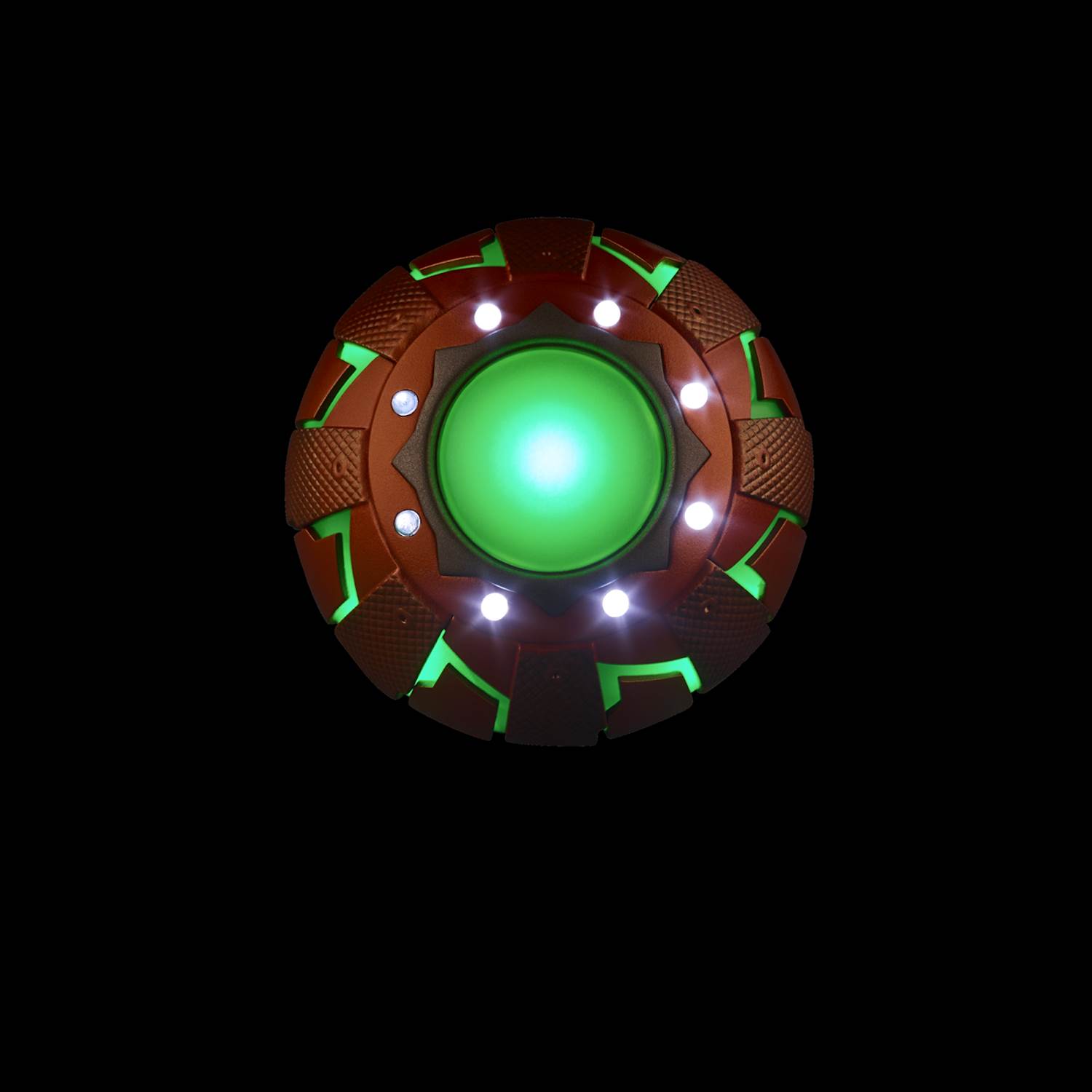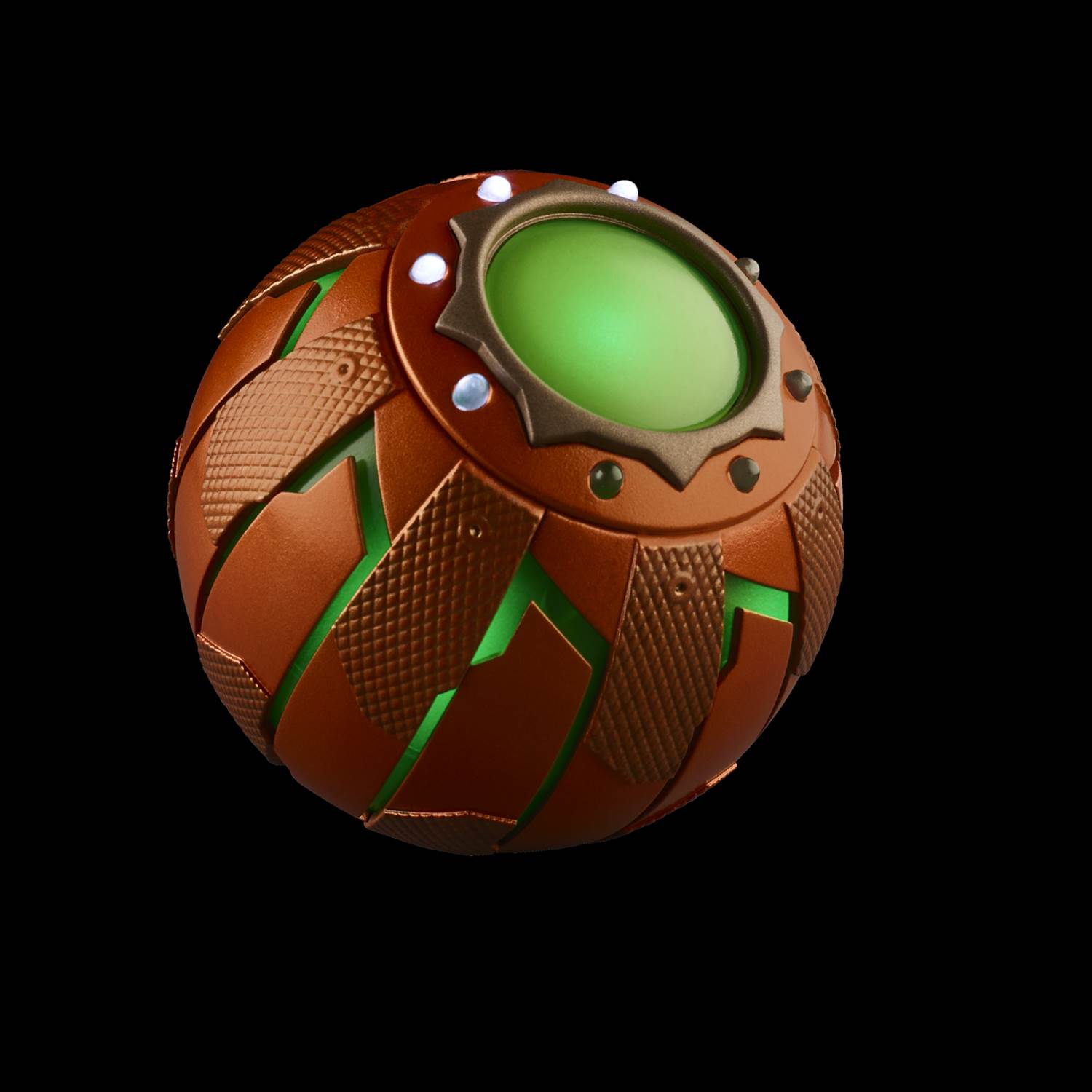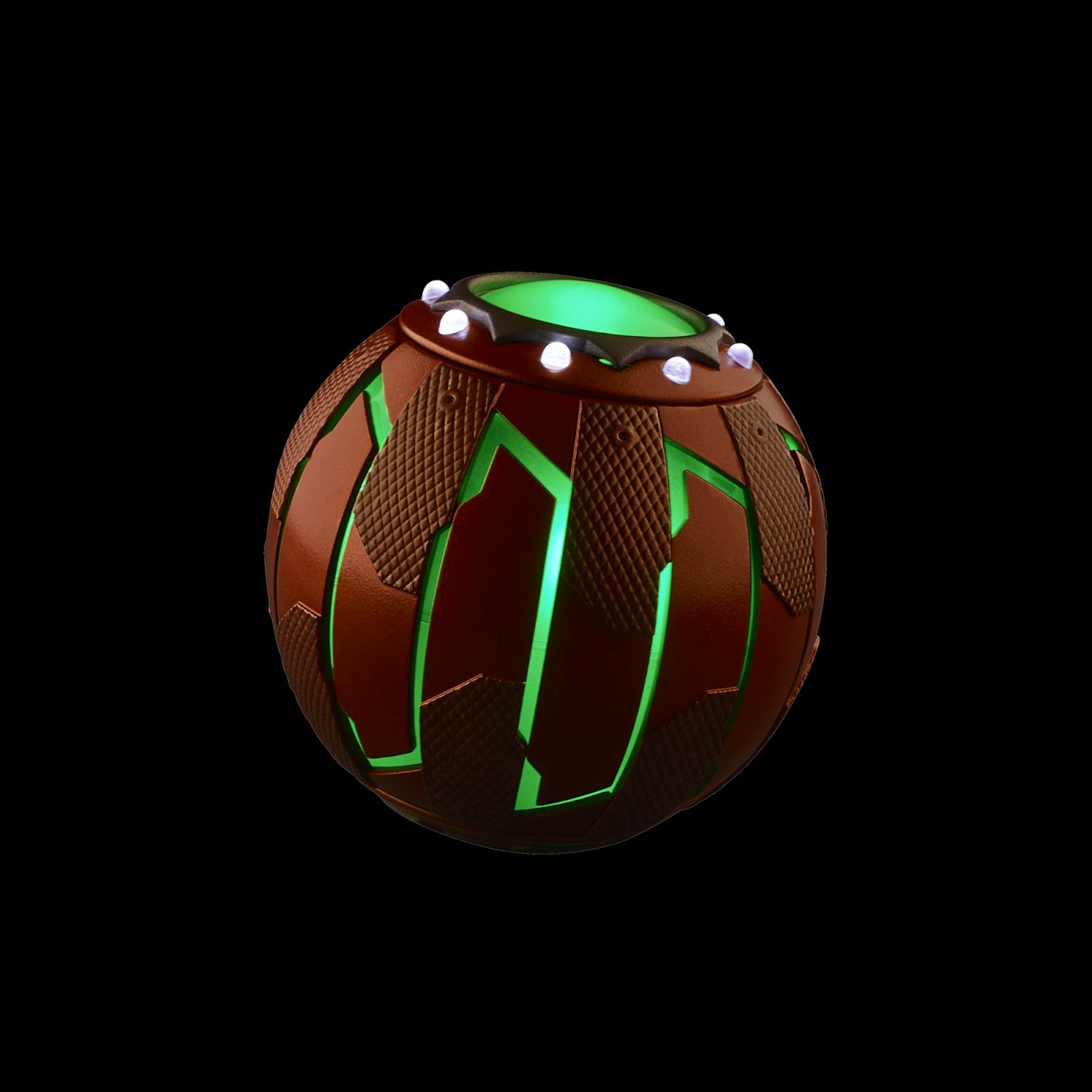 - Press the center button twice to activate a light and sound sequence, featuring the Green Goblin’s signature cackle. Roll the pumpkin for a light-up countdown ending in a blast sound FX.