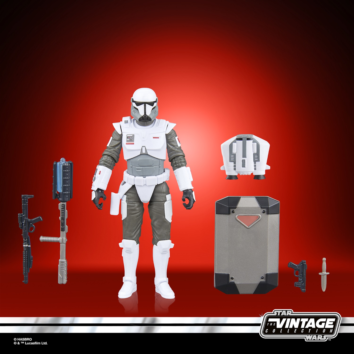 Star Wars: The Vintage Collection Imperial Armored Commando ($24.99) - “The latest generation of Imperial super commandos are highly trained warriors protected by beskar alloy cast in the form of elite trooper armor. Based on an Imperial armored commando from the STAR WARS: THE MANDALORIAN live-action series on Disney+, this 3.75-inch-scale figure makes a great addition to any fan’s collection. Features detailed series-inspired deco and multiple points of articulation. Comes with 5 accessories, including a riot shield, dagger, long and short blasters, and a baton. (VC #366)"
