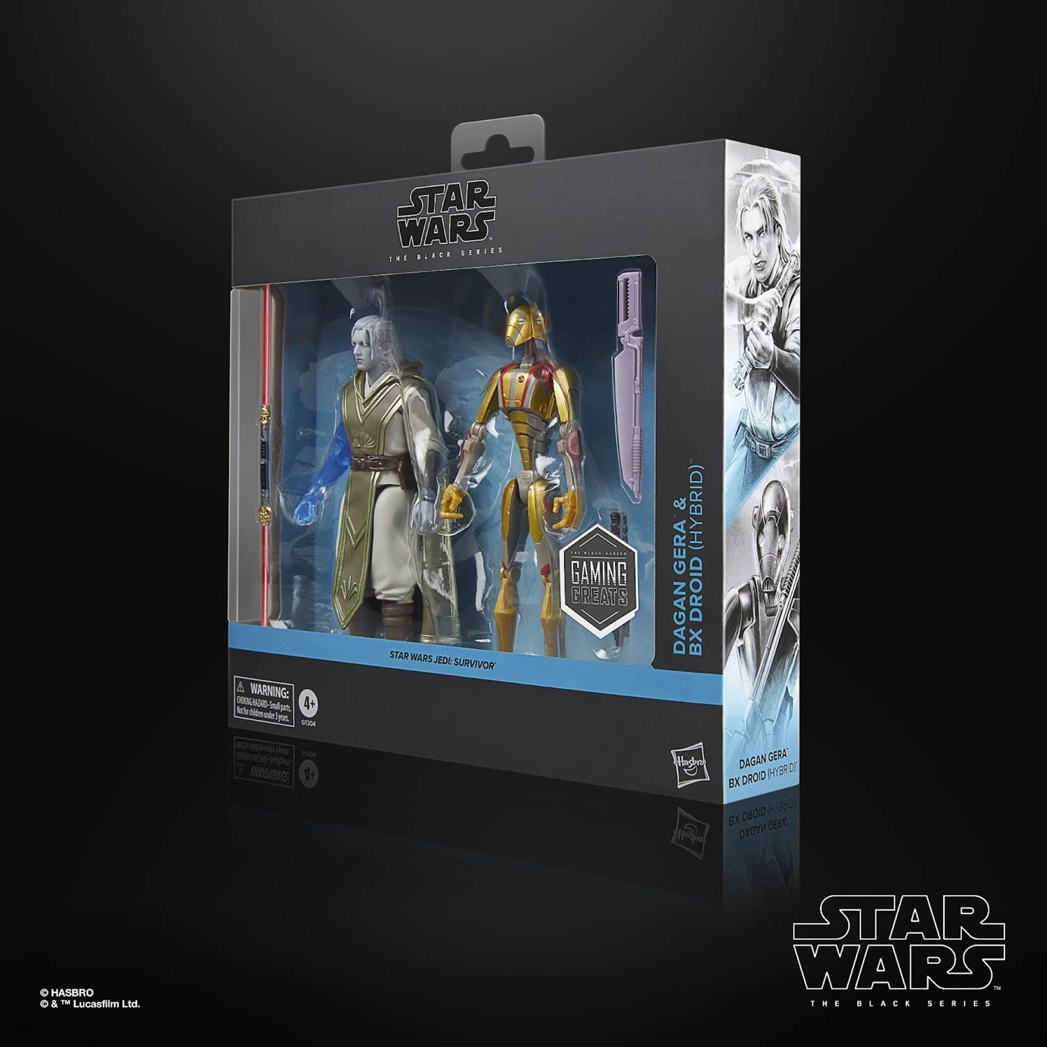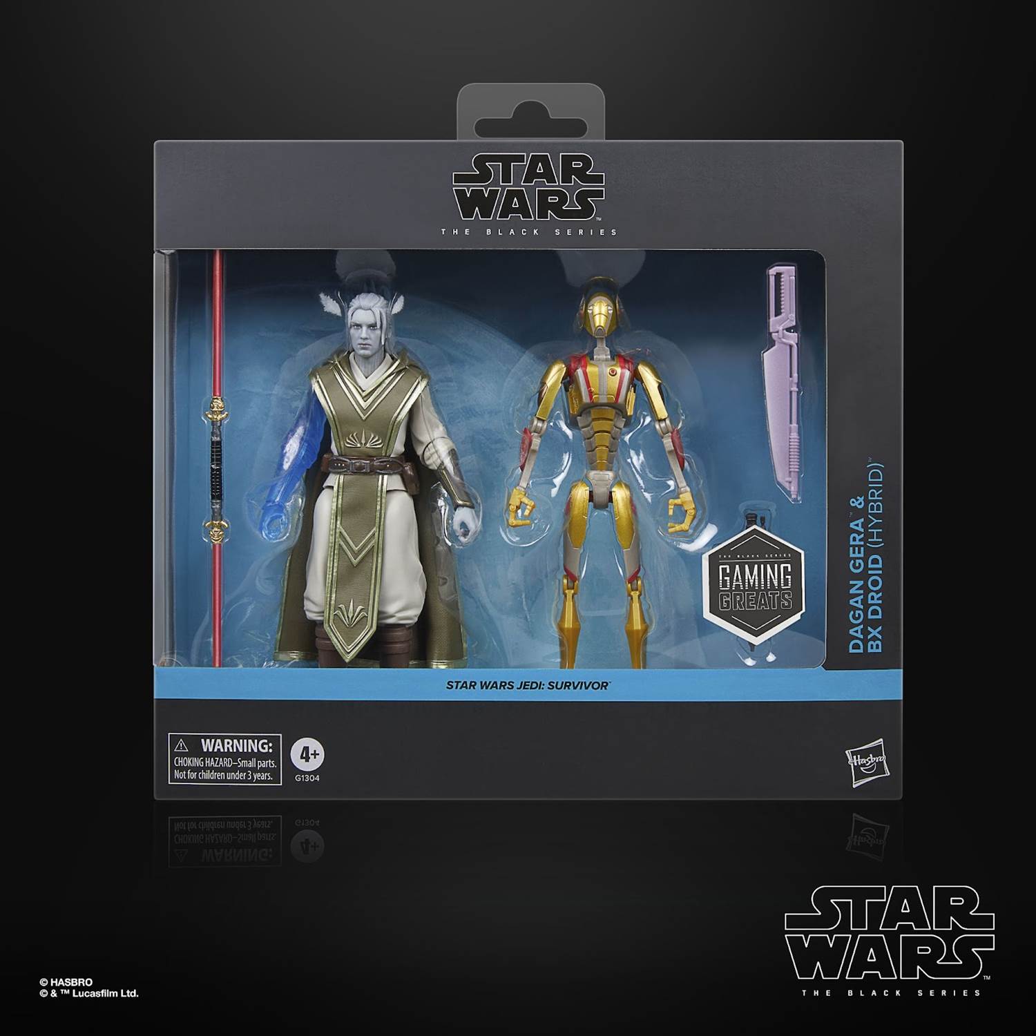 Star Wars The Black Series Dagan Gera & BX Droid (Hybrid) ($44.99) - “This STAR WARS action figure 2-pack is detailed to look like Dagan Gera & a BX droid from the STAR WARS JEDI: SURVIVOR video game. Features a poseable head, arm, and legs so fans can create dynamic poses and comes with 3 accessories. Display STAR WARS fandom on your shelf with window box packaging featuring sleek character art." (Amazon exclusive)