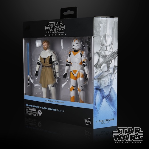 - Hasbro: “During the Clone Wars, Obi-Wan Kenobi became a general in the Army of the Republic, leading the famed 212th clone military battalion with Commander Cody. STAR WARS: THE BLACK SERIES includes 6-inch action figures, vehicles, and roleplay items from the 40-plus-year legacy of the STAR WARS galaxy, letting fans create galactic scenes with a faithfulness to STAR WARS comic books, movies, and series. This STAR WARS action figure set is detailed to look like Obi-Wan Kenobi and a 212th legion clone trooper. Comes with his signature Lightsaber and a blaster accessory. Display STAR WARS fandom and nostalgia on your shelf with packaging featuring sleek character art."