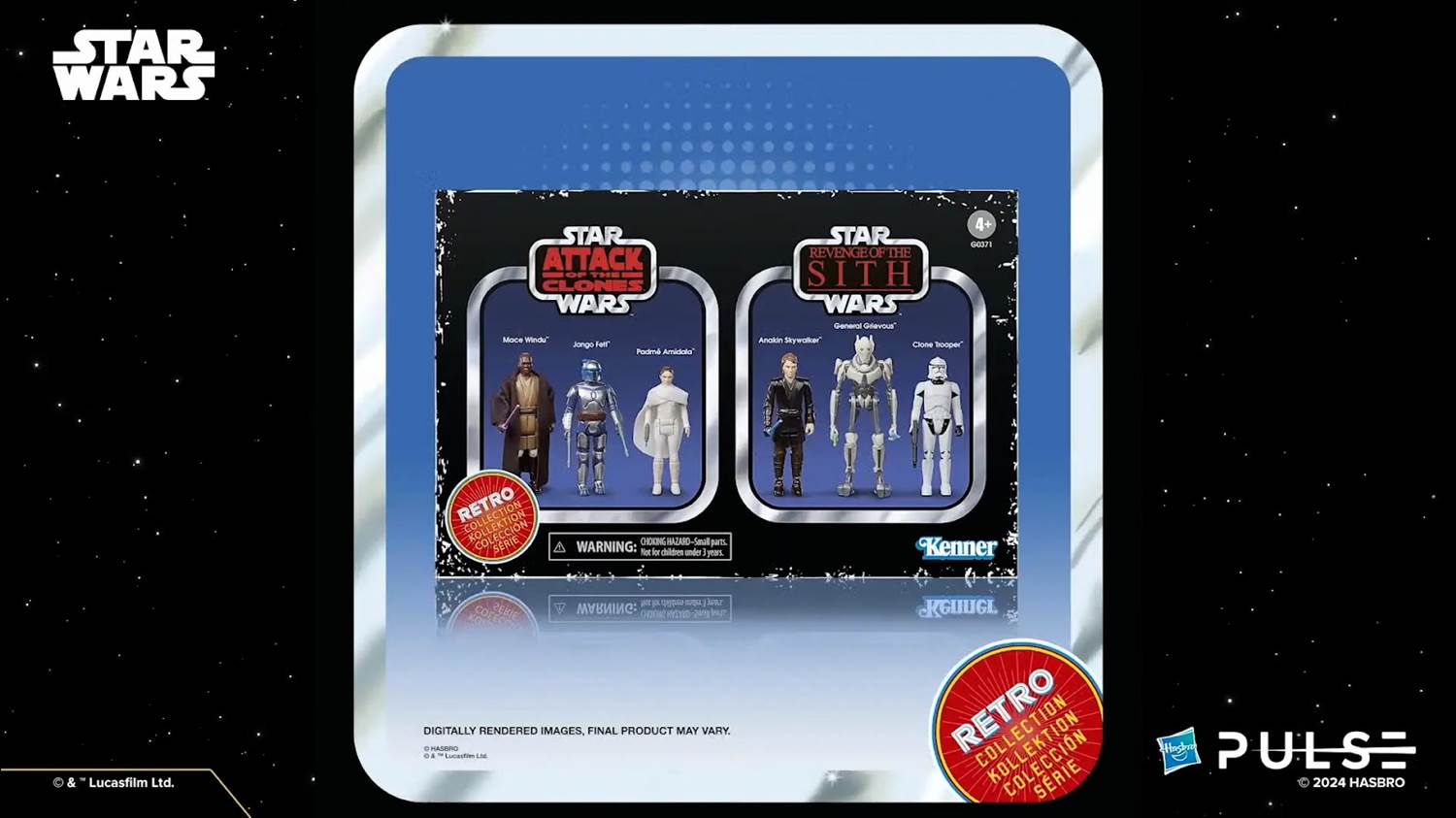 A Retro Collection six-pack boxed set will contain characters from both Attack of the Clones and Revenge of the Sith, including Padmé Amidala, Jedi Knight Anakin Skywalker, Jango Fett, a Clone Trooper, Mace Windu, and General Grievous.
