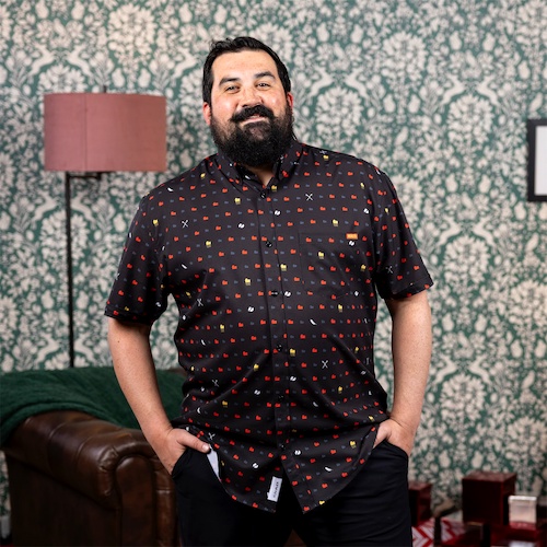 Whether you’re a fan of the house logo or prefer to share your love with cartoon drawings of some filthy animals, RSVLTS has something for you with their signature Kunuflex button down shirts. If you want to show your love for Home Alone in playful cosplay way, seasonal outerwear like “The Polinski" reversible bomber jacket or “Little Nero’s Pizza" coach jacket will bring the movie off the screen and your wardrobe.