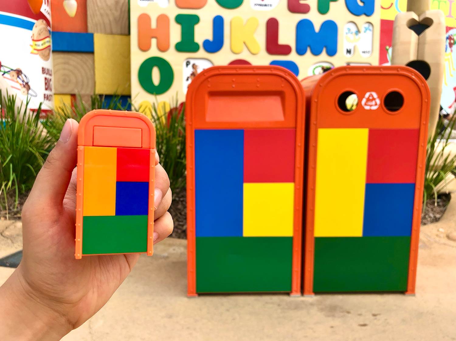 - The collection was designed by Amy and Rachel, who walked the park several times in order to choose the six trash cans to feature in the collection. Their top priority was choosing something colorful, allowing the themes to be distinguished from one another and catch the eye of potential collectors.