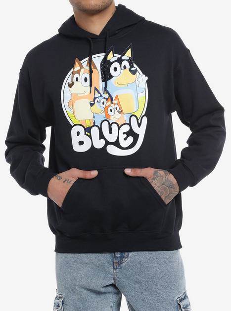 So, today we’re taking a look at Bluey offerings at Hot Topic including new items as well as those on sale. First up is the Family Hoodie featuring sisters Bluey and Bingo with mum, Chili and dad, Bandit. Best of all this hoodie is designed for adults, because c’mon, let’s face it, we’re more into the show than the kiddos!
