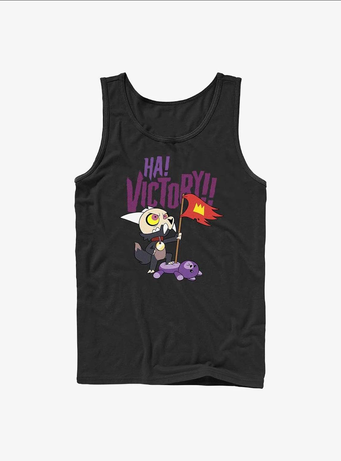 If tank tops are more your speed, you’ll love these styles featuring King! One shows the loveable Titan wearing a Burger Queen hat with the text “Kind of Demons." He also lends his image another shirt celebrating his “Victory" over a small purple creature.