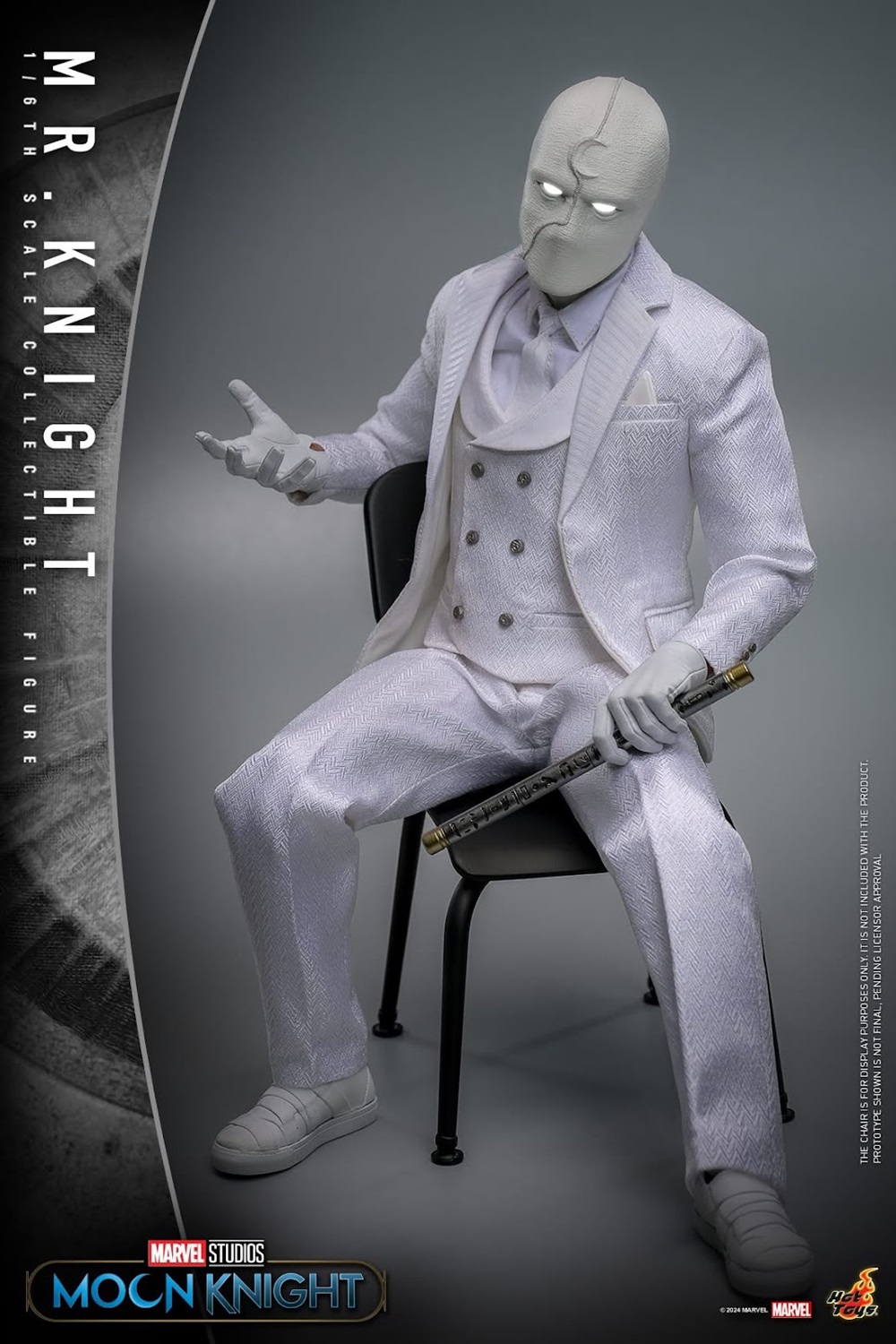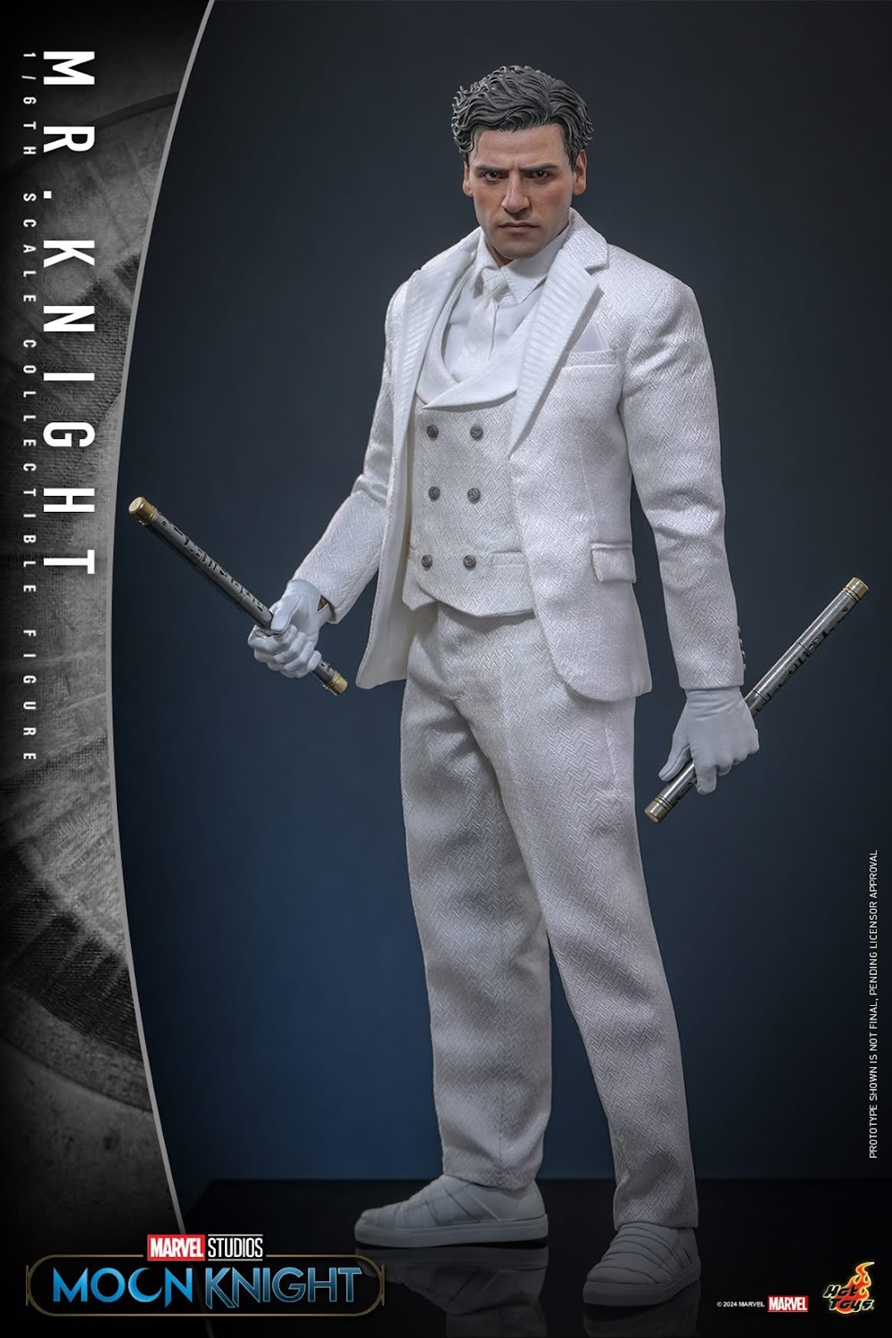 - “This highly detailed [Mr. Knight] figure boasts a hand-painted headsculpt with a detailed likeness of Oscar Isaac in the role, with Hot Toys' innovative rolling eyeball design, plus an additional masked head with LED light-up eyes. Mr. Knight is equipped with a Scarab and 2 truncheons embellished with ancient symbols."