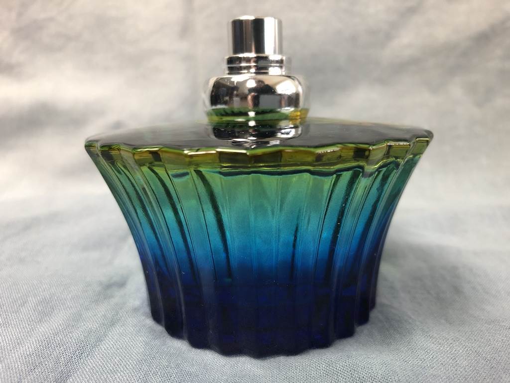 As with all House of Sillage fragrances, this features a gorgeous hand painted bottle made of French glass. It’s topped with a domed lid to make the entire presentation look like a cupcake. Enamel finishes add a pop of color and hand-placed Swarovski crystals on the lid add to the luxury, plus keeping with the theme of Pandora, the cap features an Ilu gliding gently on the surface of the dome. It’s surrounded by corals, fish and aquatic plants that are in full bloom