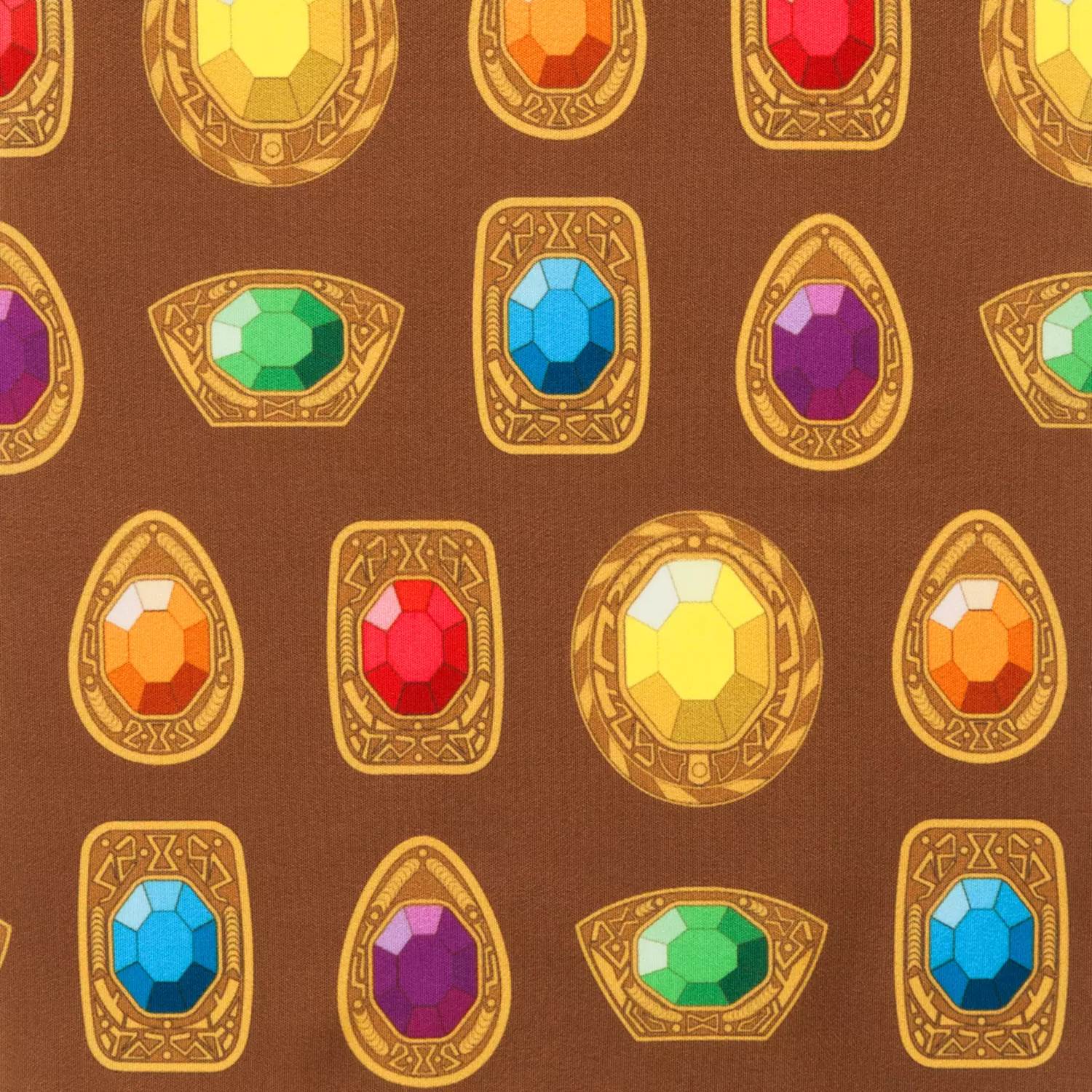 - The metallic gold backpack also features a themed interior, featuring an infinity stone fabric pattern.