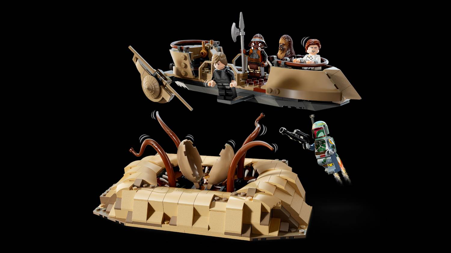 The third new set to be revealed is the LEGO Star Wars Desert Skiff & Sarlacc Pit ($79.99) from Return of the Jedi. “The desert skiff features translucent elements for a hover effect and has playful details such as a push-out plank for Luke Skywalker to walk and the foldout railing where Han Solo nearly fell off. The pit has levers to move the Sarlacc’s tentacles, and the Sarlacc has space in its mouth for a LEGO minifigure."